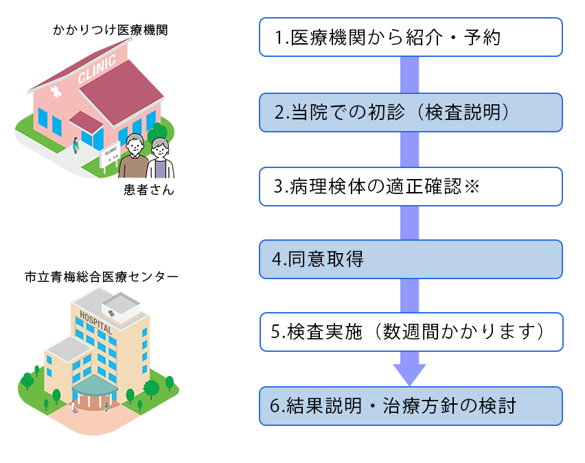 3 外来日決定後、貴院へ「市立青梅総合医療センター がんゲノム医療初診予約票」をお送りします。