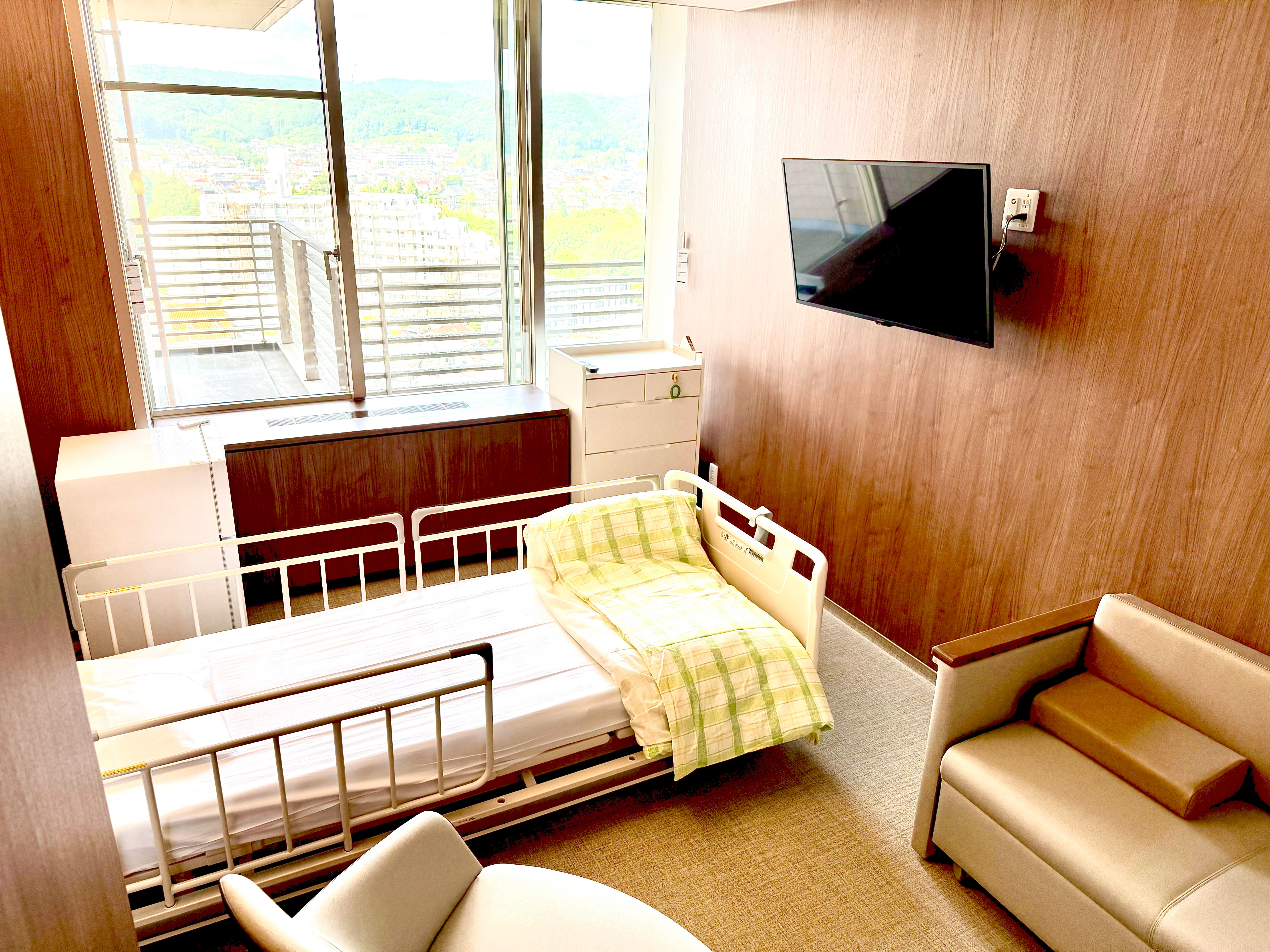 緩和ケア病棟はがんを治すことを目標とした治療の継続が難しい、または、そうした治療を希望しない患者さんが、残された時間をなるべくご家庭に近い環境で自分らしく過ごすことを目的とした病棟です。そのため治癒を目的とした治療はおこなわず、身体症状や精神症状の緩和治療をおこないます。